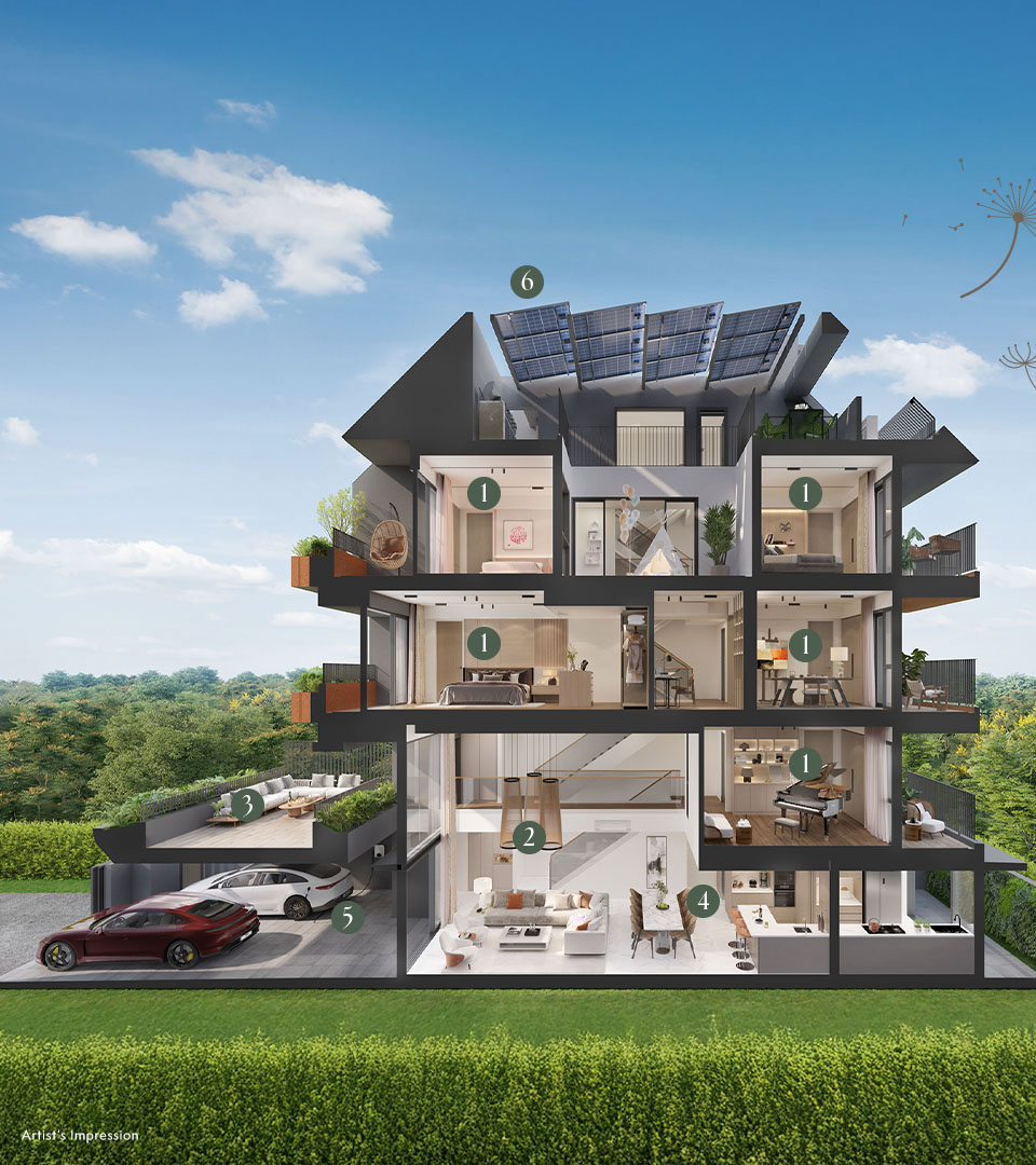 Pollen Collection II. Designed by award-winning W Architects, these 5-level landed homes feature bold modern lines, airy double-volume spaces, and 4,500 sq ft for your family to grow, gather, and create a lifetime of memories—embodying the new vision to landed living.